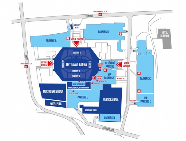 Na tuto akci je možné využít tři vstupy do arény a to od ulice Ruská, ulice Závodní a také od hotelu Clarion.